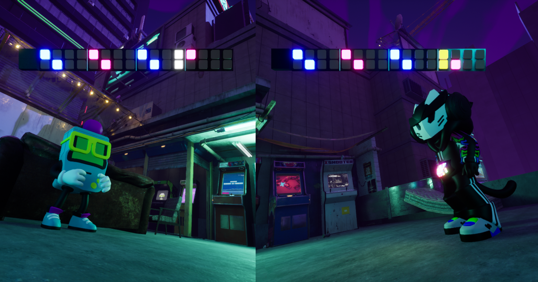 * **COPY CAT**: A turn-based beat sequencer where players echo musical beats to advance through song arrangements.